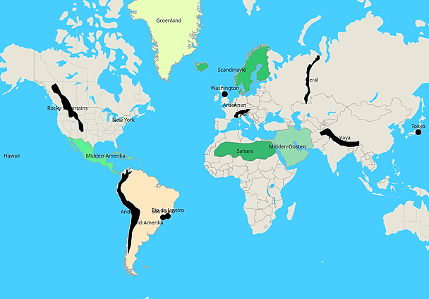 Topografie Wereldgebieden, gebergten en steden