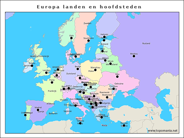 Topografie Europa landen en hoofdsteden