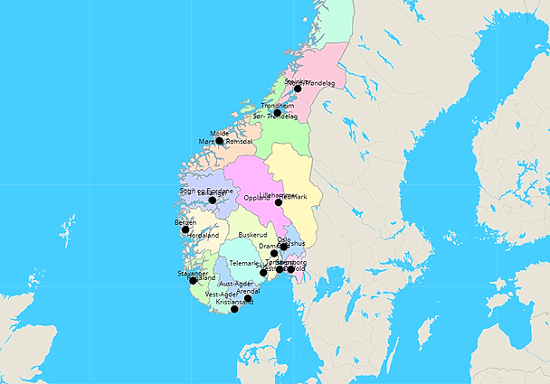 Topografie Noorwegen Provincies en hun hoofdsteden