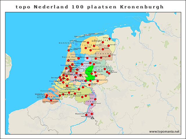 Kleine kaart topo Nederland 100 plaatsen Kronenburgh (640x480)
