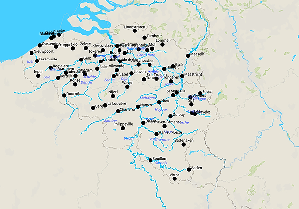 Topografie rivieren en steden belgië