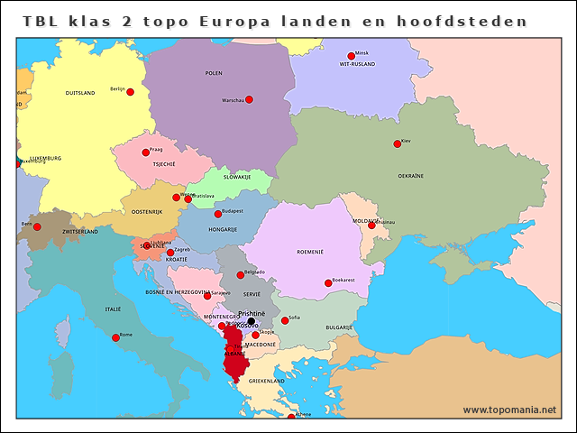 Topografie TBL klas 2 topo Europa landen en hoofdsteden