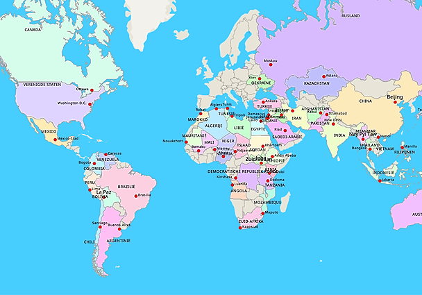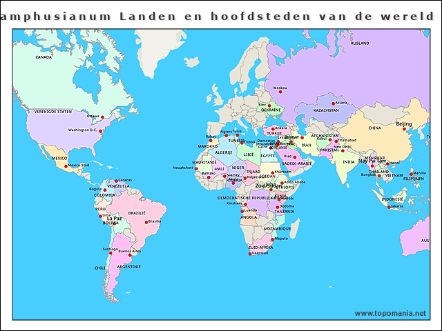 Topografie Camphusianum Landen en hoofdsteden van de wereld