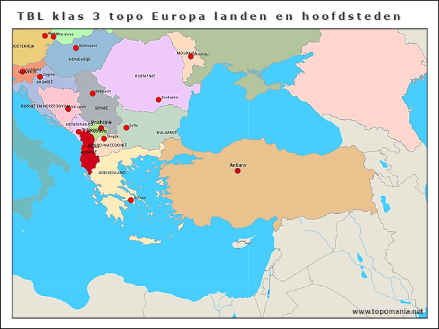 Topografie TBL klas 3 topo Europa landen en hoofdsteden