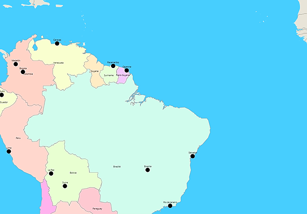 Kleine kaart topografie Zuid-Amerika Landen en steden (640x480)