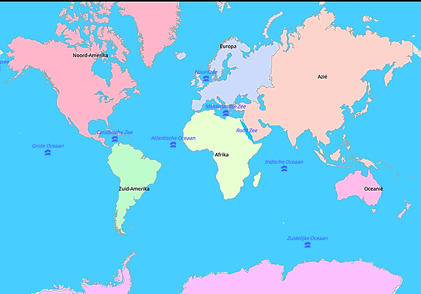 Kleine kaart TopTopo Werelddelen en oceanen (640x480)