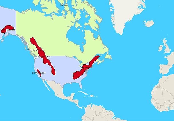 Topografie Gebergten in Noord amerika en hun landen
