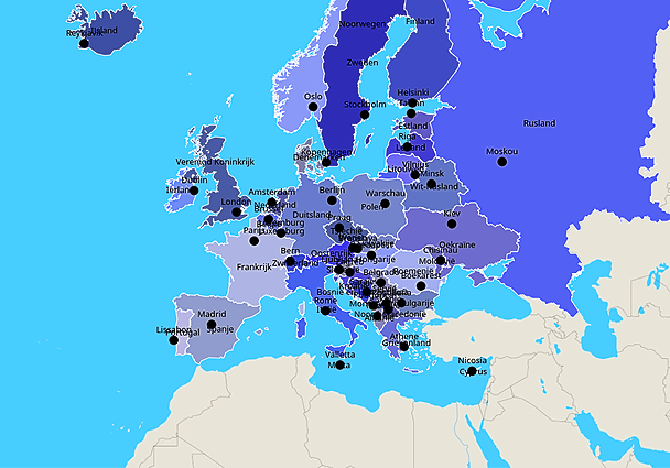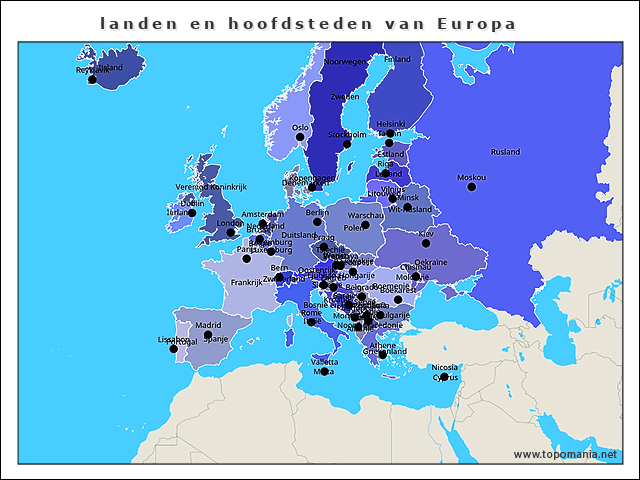 Kleine kaart landen en hoofdsteden van Europa (640x480)