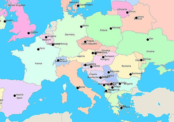 Kleine kaart Europa year 3 Countries and Capitals (640x480)