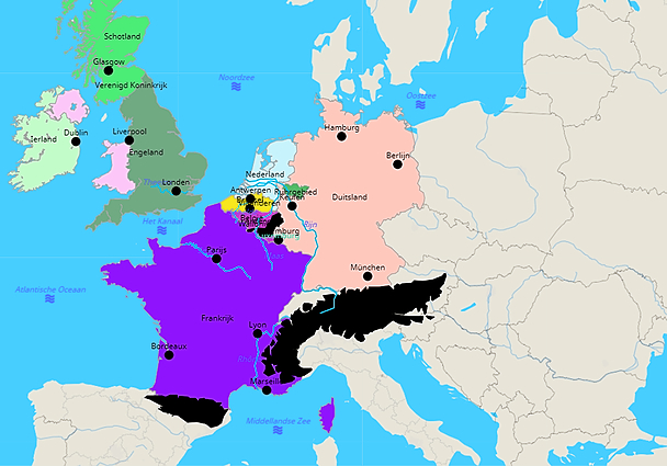 Kleine kaart West Europa Topo gr 6 (640x480)
