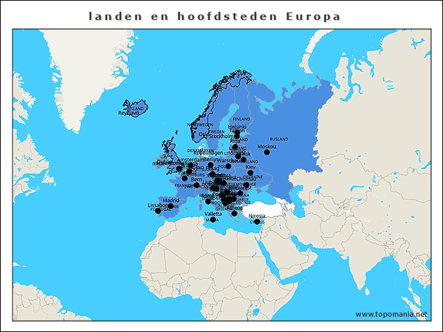Kleine kaart landen en hoofdsteden Europa (640x480)