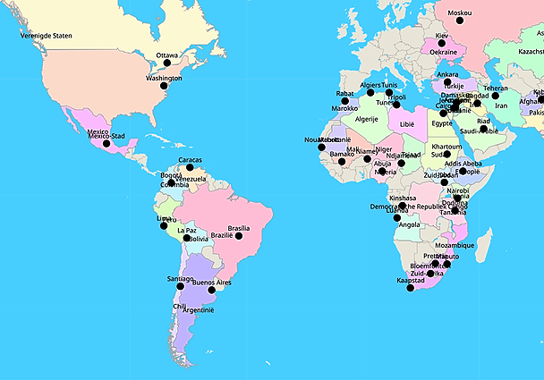 Kleine kaart VWO 3 Topo Wereld Landen en Hoofdsteden (640x480)