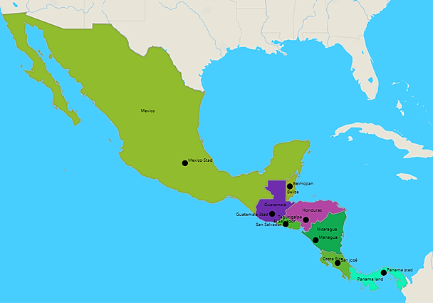 Topografie Centraal-Amerika, landen en hoofdsteden-kopie