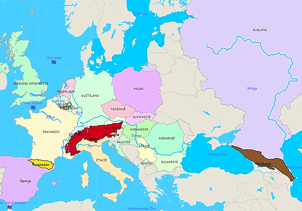 Kleine kaart Rivieren en bergen in Europa (640x480)