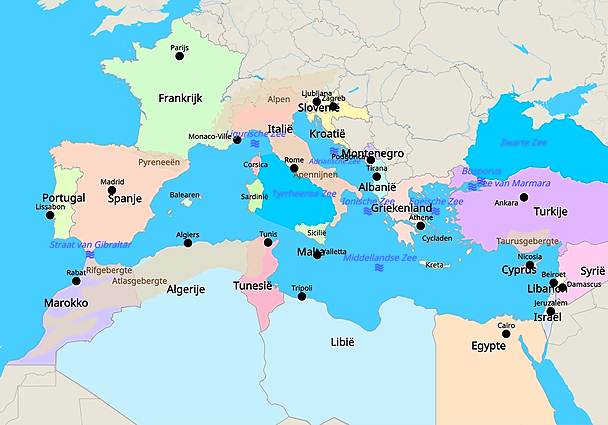 Kleine kaart Middellandse Zee gebied voor 4 havo en 4 vwo (640x480)