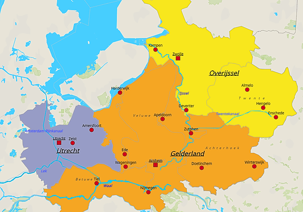 Topografie Utrecht, Gelderland en Overijssel