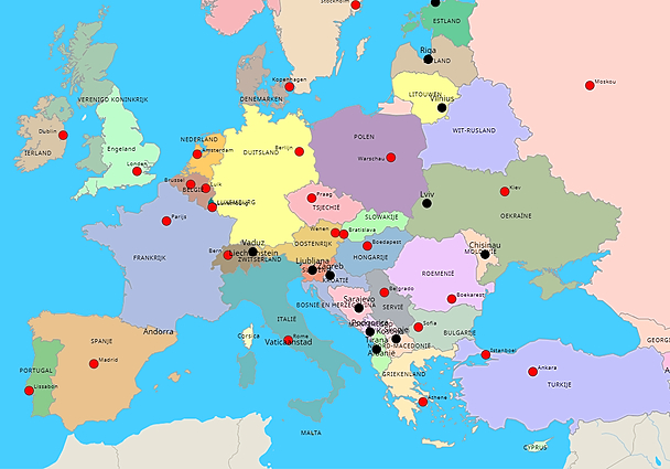 Kleine kaart Europa landen en hoofdsteden (640x480)