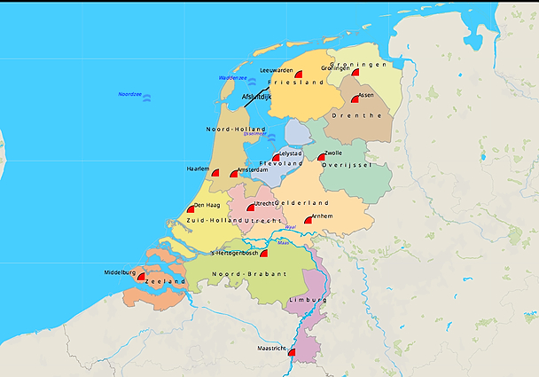 Topografie Pim Provincies, hoofdsteden en water van NL