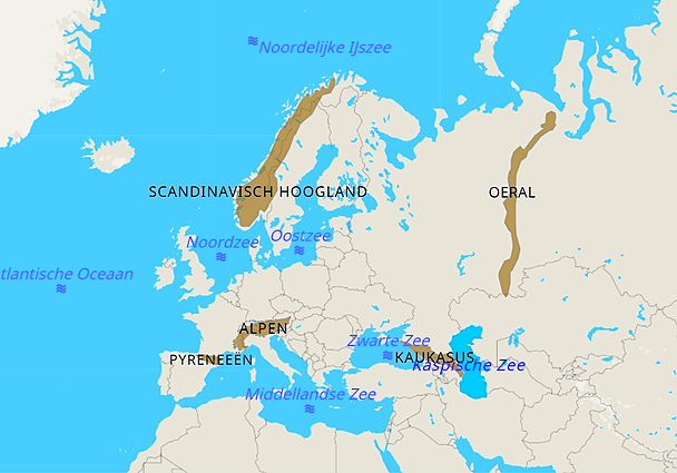 Topografie Gebergten, zeeën, oceanen van Europa 1ste jaar