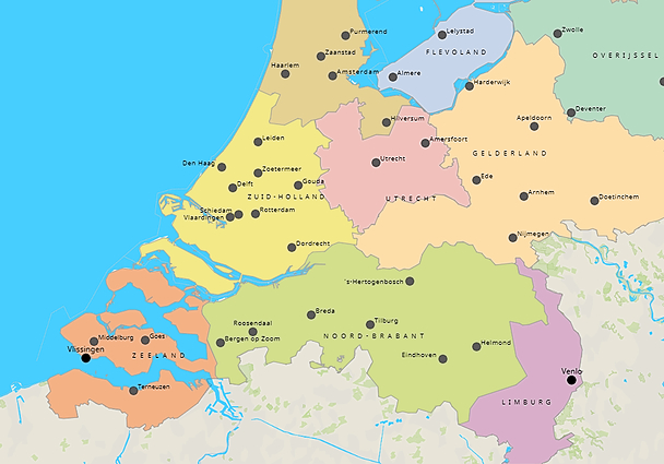 Kleine kaart Basiskaart Nederland - 70 grote plaatsen (640x480)