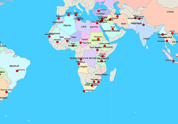 Topografie Wereld kaart Landen, en Hoofdsteden