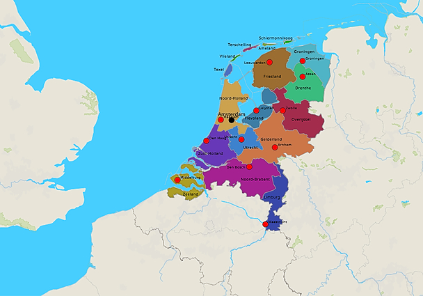 Kleine kaart Groep 5 - Provincies hoofdsteden en eilanden (640x480)