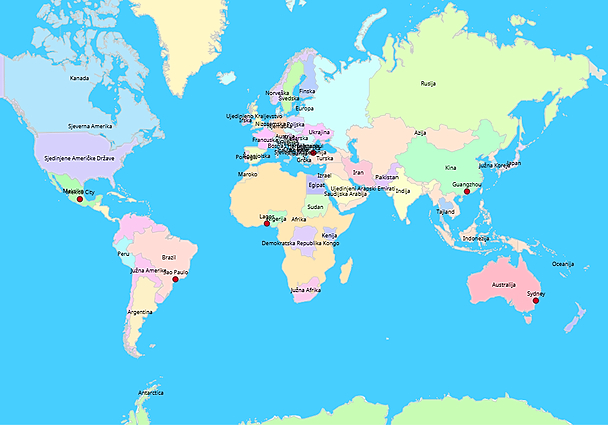 Kleine kaart Topografija svijeta na hrvatskom (640x480)