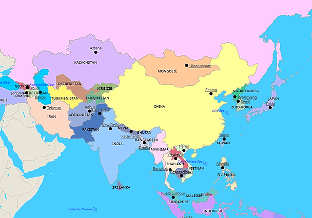 Kleine kaart Centraal- en Oost-Azië (640x480)