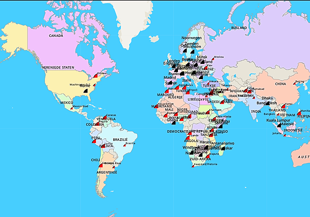 Topografie Wereld landen en steden landen en hoofdsteden