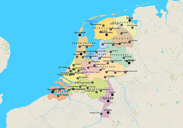 Kleine kaart Basiskaart Nederland - 60 grote plaatsen (640x480)