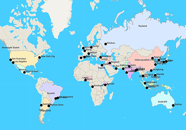 Topografie grootste steden ter wereld