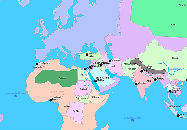 Topografie Werelddelen gebieden, steden, landen en wateren