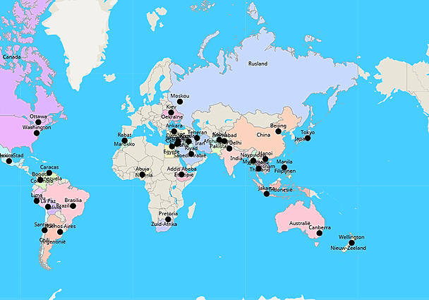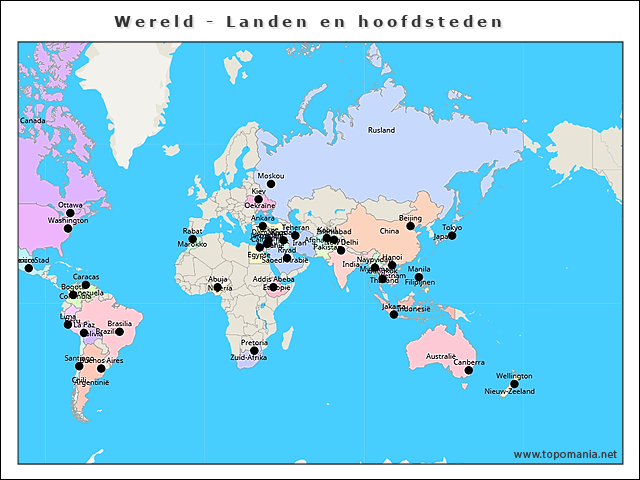 Kleine kaart Wereld - Landen en hoofdsteden (640x480)