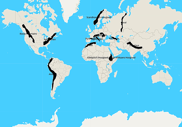 Topografie Parate kennis Aard - enkel bergketens