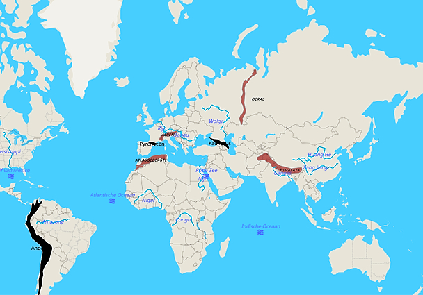 Topografie Wereld- Rivieren, Gebergte, Zeeën en Oceanen