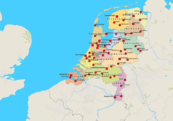 Topografie Nederland provincies en steden