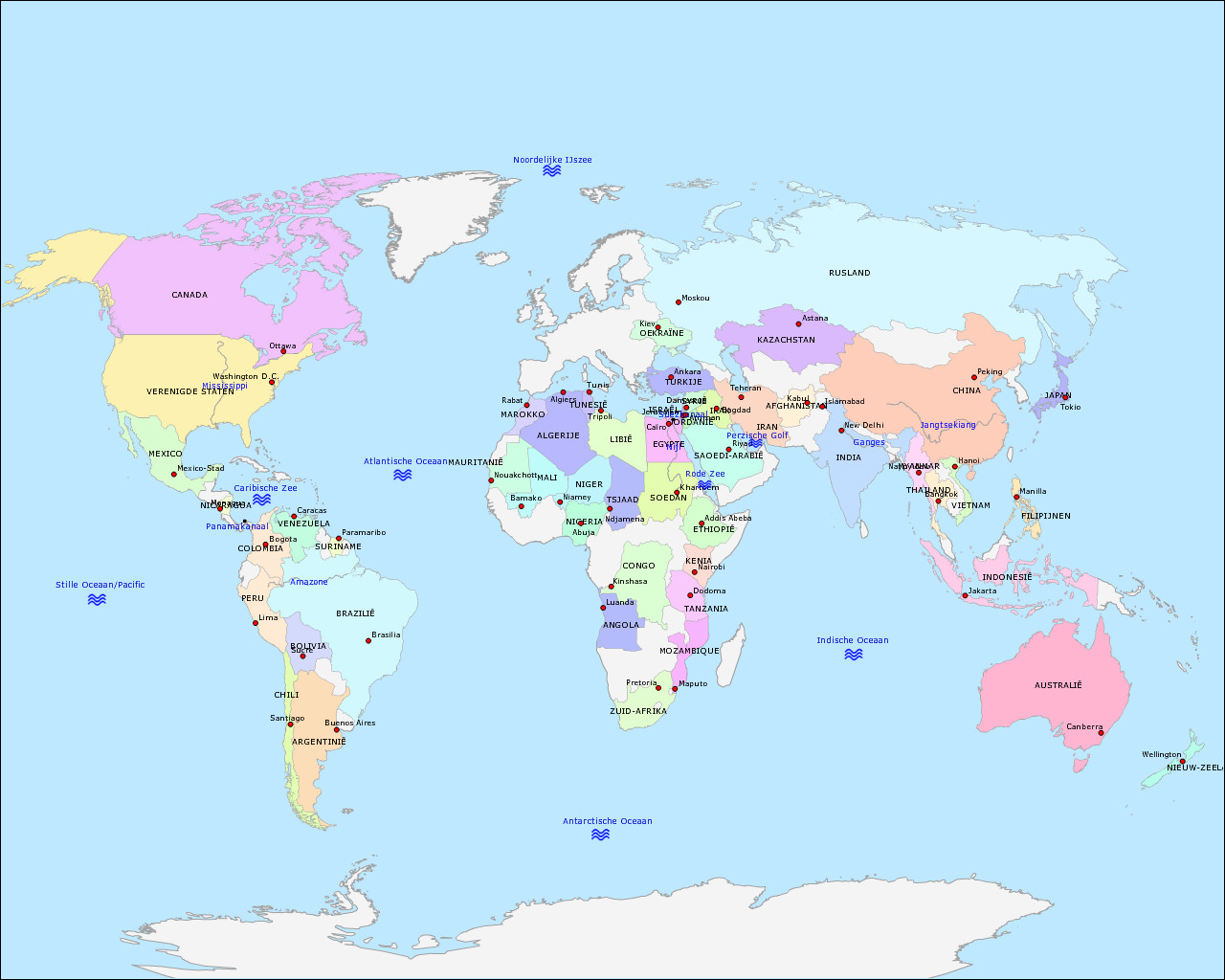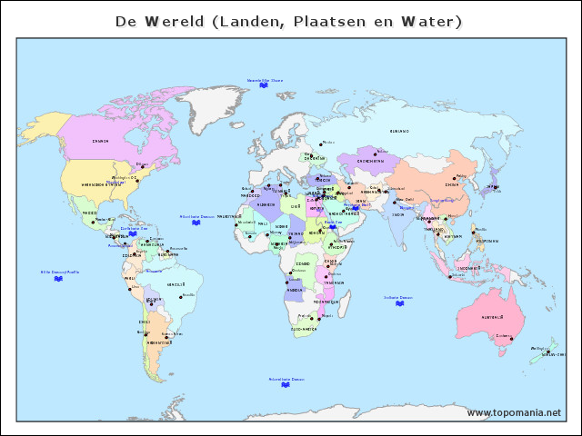 Kleine kaart De Wereld (Landen, Plaatsen en Water) (640x480)