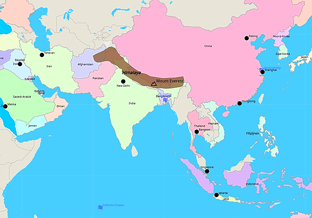 Kleine kaart Azië en Oceanië Vierkeerwijzer (640x480)