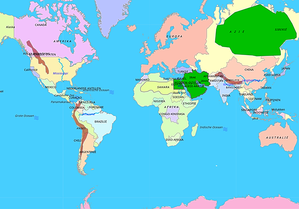 Kleine kaart Wereld landen, gebieden en wateren (640x480)