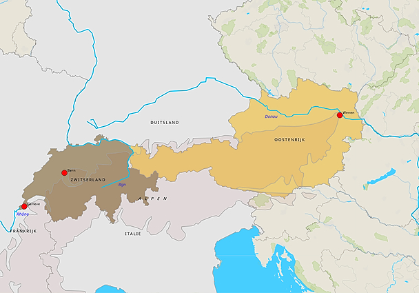 Topografie Oostenrijk en Zwitserland