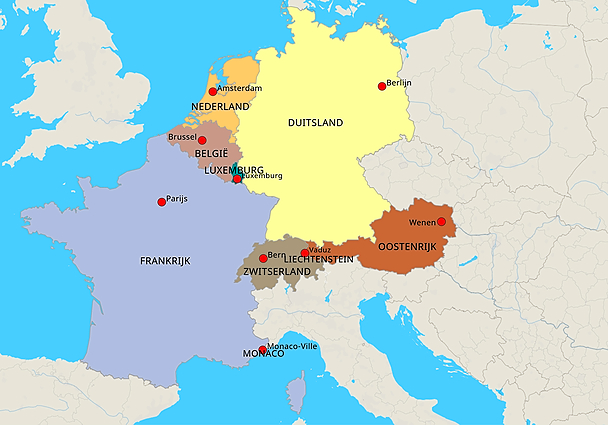 Kleine kaart Landen en hoofdsteden West-Europa 2 (640x480)