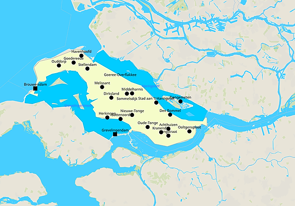 Topografie Goeree-Overflakkee dorpen en bruggen