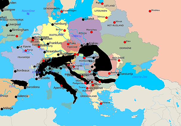 Kleine kaart Landen hoofdsteden extra steden van Europa (640x480)