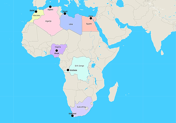 Topografie Referentie kaart _ Afrika _ Landen 3de jaar