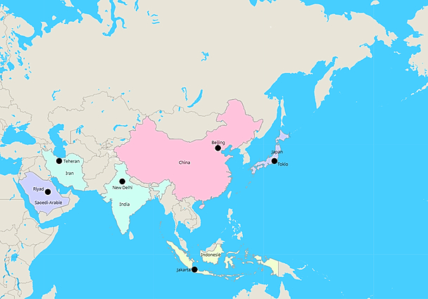 Topografie Referentie kaart _ Azië_ Landen 3de jaar