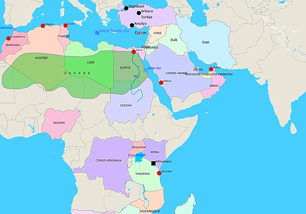 Kleine kaart Afrika en Midden-Oosten Periode 4 leerjaar 1 (640x480)