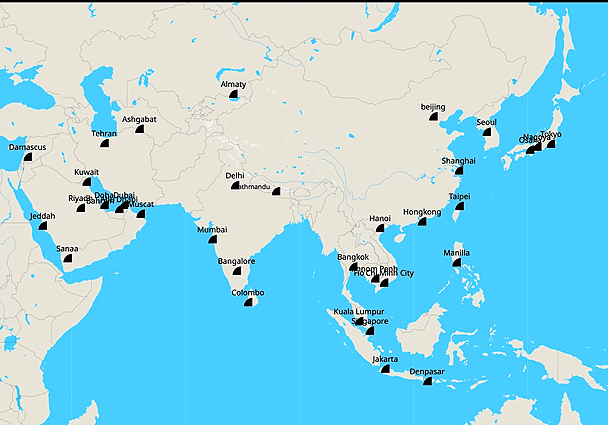 Kleine kaart vliegvelden zuid-azië (640x480)