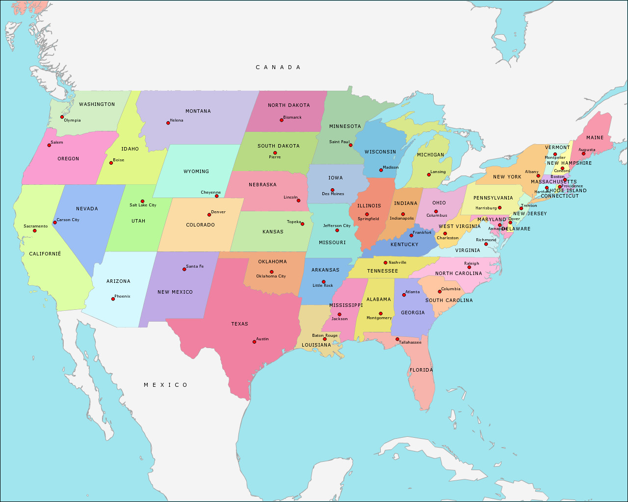 Kleine kaart Staten en hoofdsteden van de VS (640x480)