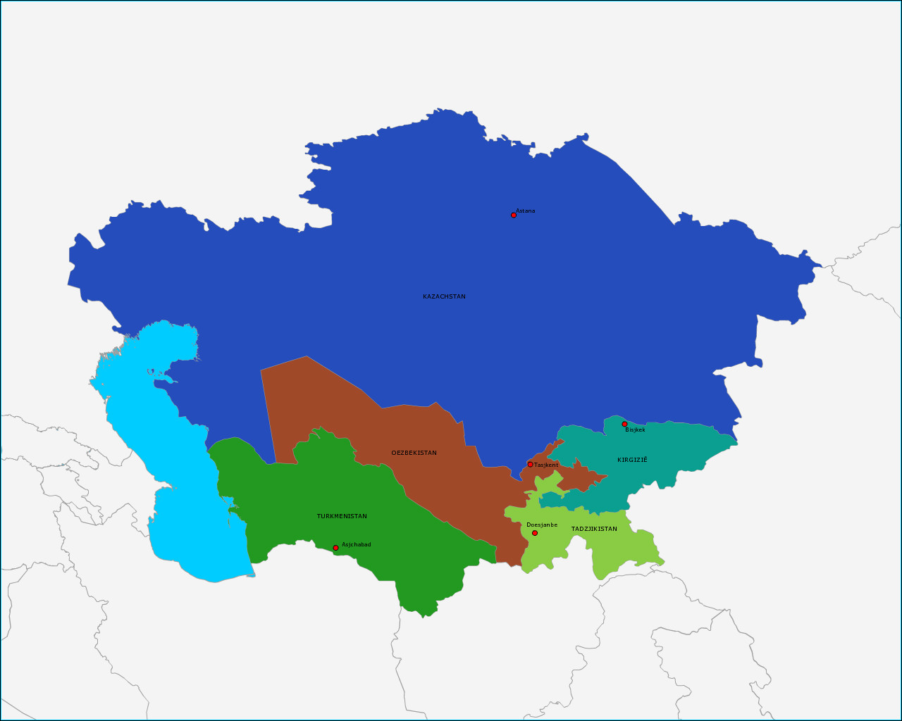 Topografie Landen en hoofdsteden van Centraal-Azië