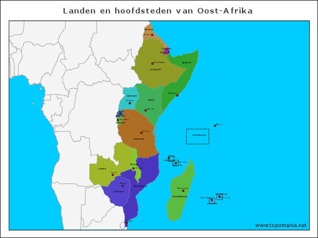 Topografie Landen en hoofdsteden van Oost-Afrika